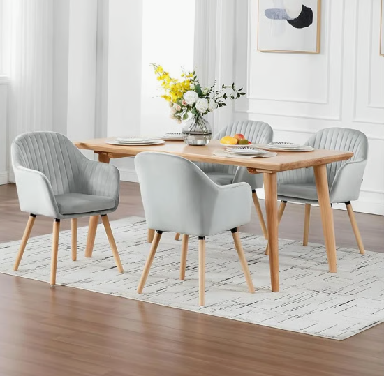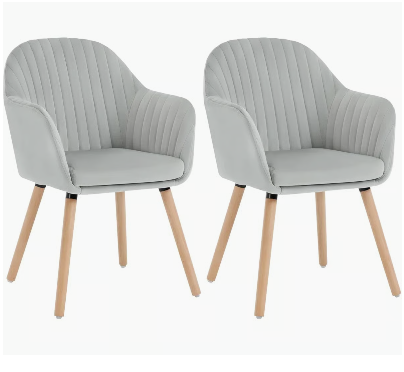 Dining Room Velvet Arm Chairs, featuring luxurious light grey velvet upholstery and a timeless design. Crafted for comfort and versatility, these chairs blend ergonomic support with durable construction, perfect for any room in your home.